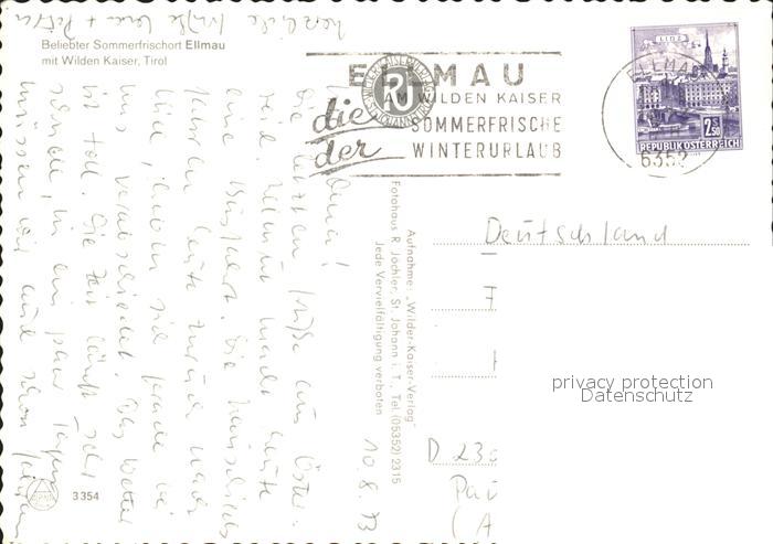 72156877 alte Postkarte Ellmau Tirol Ortsansicht mit Kirche Wilder Kaiser postalisch gelaufen Erhaltung siehe scans KatCode: 11390335070509
