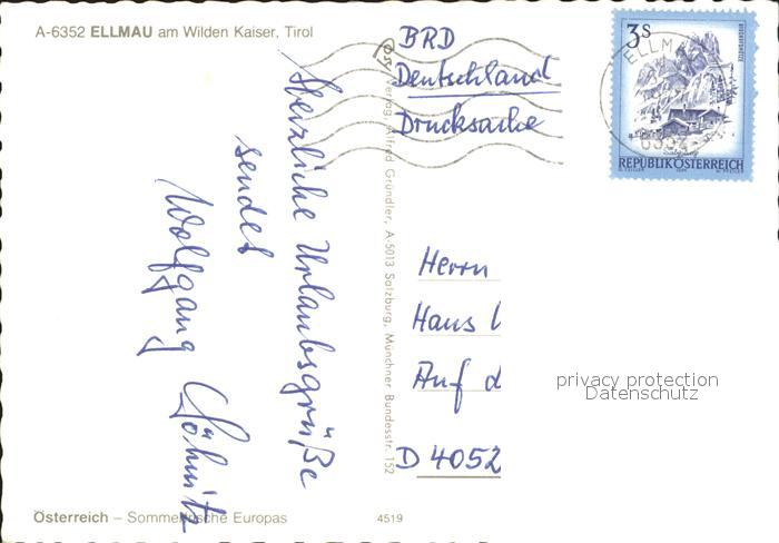 72254113 alte Postkarte Ellmau Tirol Panorama Wilder Kaiser Kirche Hotel postalisch gelaufen Erhaltung siehe scans KatCode: 11390335070509