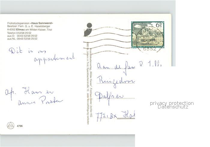 71908103 alte Postkarte Ellmau Tirol Pension Haus Sonnwend postalisch gelaufen Erhaltung siehe scans KatCode: 11390335070509