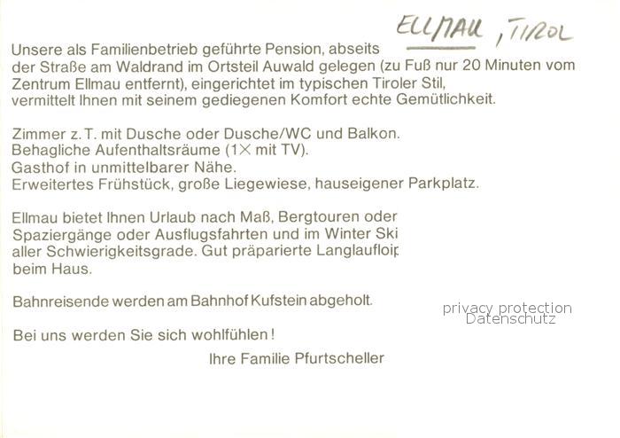 73319133 Ellmau Tirol Pension Pfurtscheller Winterpanorama Alpen postalisch nicht gelaufen Werbekarte (keine Postkarte) Erhaltung siehe scans [FriedD77] KatCode: 11390335070509