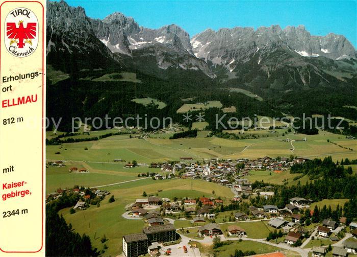 73760991 alte Postkarte Ellmau Tirol Sommer- und Wintererholungsort mit Kaisergebirge postalisch gelaufen Fliegeraufnahme Erhaltung siehe scans [FriedD77] KatCode: 11390335070509