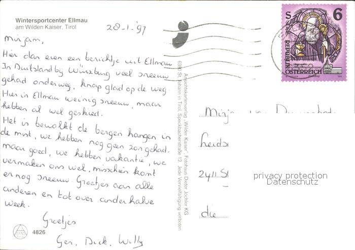 72448022 alte Postkarte Ellmau Tirol Wintersportcenter Alpen Wilder Kaiser Kaisergebirge Ortspartie Kirche postalisch gelaufen Erhaltung siehe scans KatCode: 11390335070509