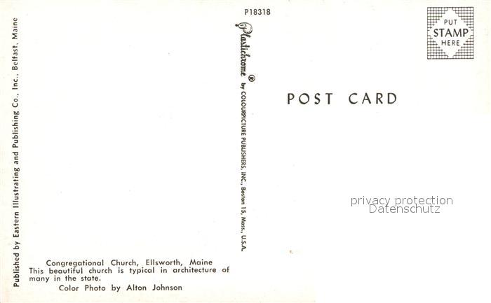 72944765 Ellsworth Maine Congregational Church postalisch nicht gelaufen Erhaltung siehe scans [WerneD78] KatCode: 14140210000000