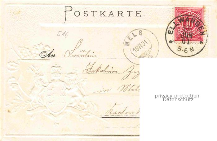 74058801 alte Postkarte Ellwangen Jagst Blick zum Stadtzentrum Wappen Krone Bilderrahmen postalisch gelaufen Erhaltung siehe scans [FriedD77] KatCode: 11110008136019