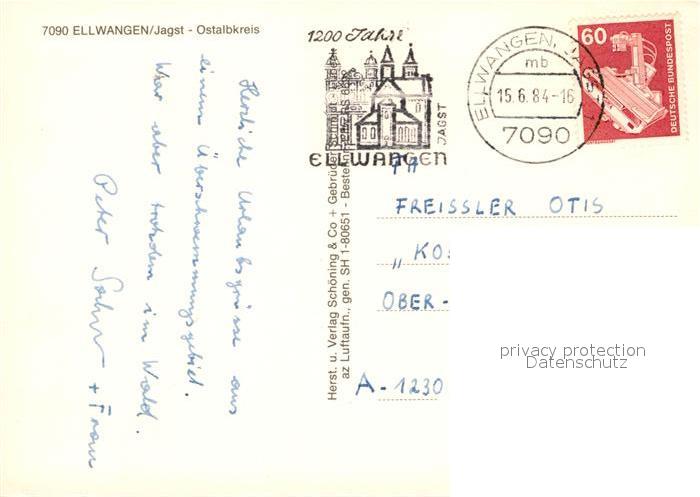 73062341 alte Postkarte Ellwangen Jagst Fliegeraufnahme postalisch gelaufen Erhaltung siehe scans [KathaD81] KatCode: 11110008136019