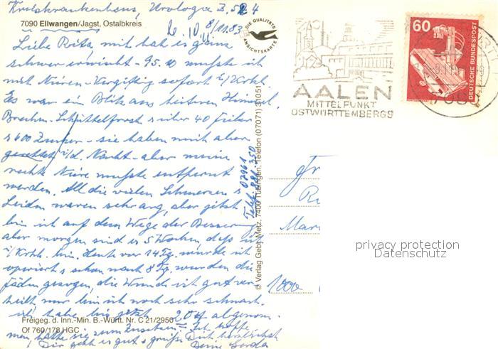 73720275 alte Postkarte Ellwangen Jagst Fliegeraufnahme postalisch gelaufen Erhaltung siehe scans [WerneD78] KatCode: 11110008136019