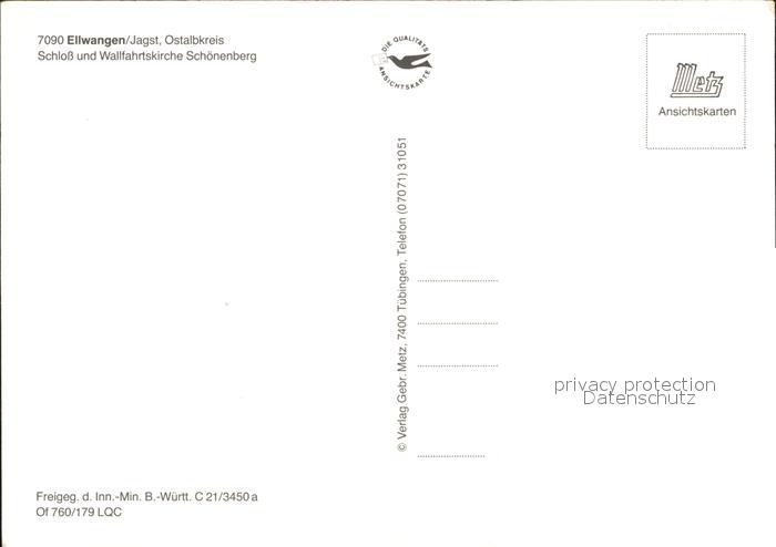 72257156 Ellwangen Jagst Fliegeraufnahme Schloss und Wallfahrtskirche Schoenenberg postalisch nicht gelaufen Erhaltung siehe scans KatCode: 11110008136019