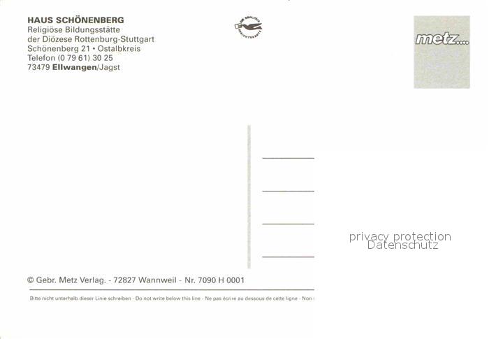 72667266 Ellwangen Jagst Haus Schoenenberg postalisch nicht gelaufen Erhaltung siehe scans [LiesaD40] KatCode: 11110008136019