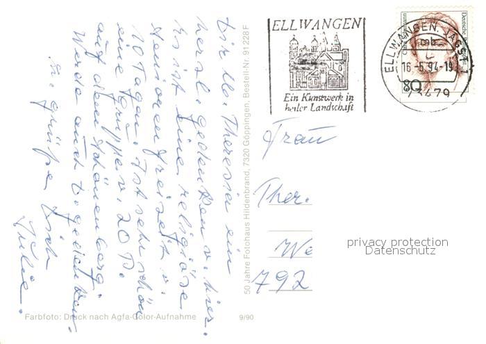 73119085 alte Postkarte Ellwangen Jagst Schloss Kirche Stadttor postalisch gelaufen Erhaltung siehe scans [KathaD81] KatCode: 11110008136019