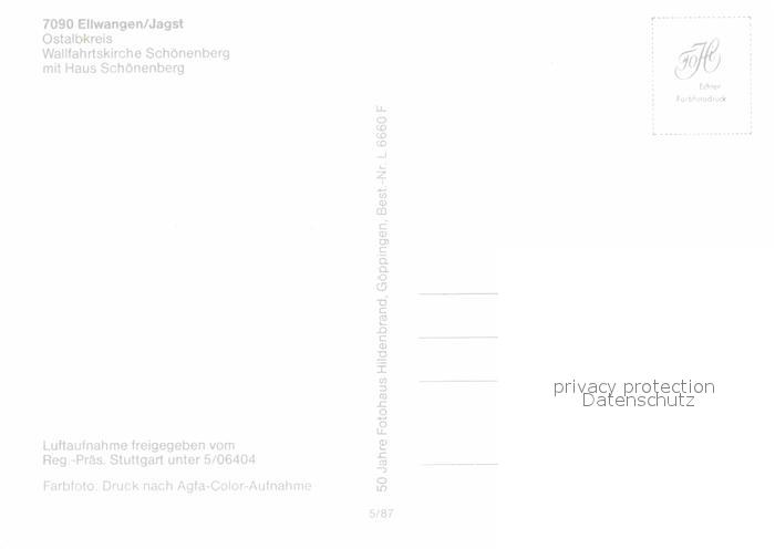 72756563 Ellwangen Jagst Wallfahrtskirche Schoenenberg mit Haus Schoenenberg Fliegeraufnahme postalisch nicht gelaufen Erhaltung siehe scans [WerneD78] KatCode: 11110008136019