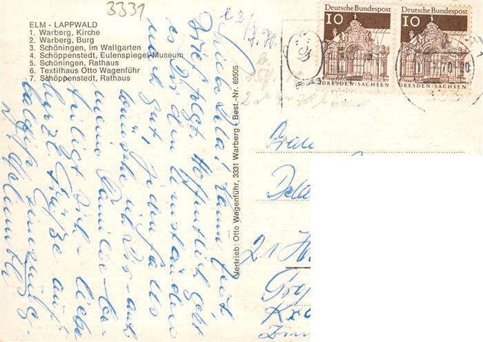 73883584 alte Postkarte Elm Braunschweig Kirche Schloss Park Brunnen Teilansichten postalisch gelaufen Erhaltung siehe scans [WerneD78] KatCode: 11110003101000