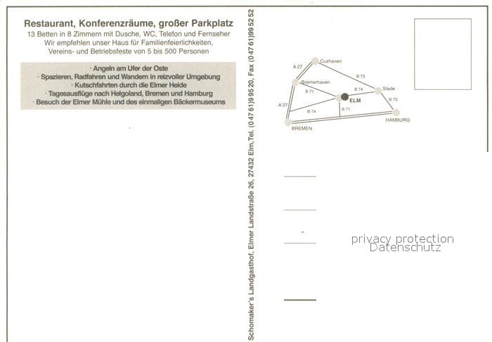 73717213 Elm Bremervoerde Schomakers Landgasthof Windmuehle Elm Hotelzimmer im Landhausstil Ostepartie postalisch nicht gelaufen Erhaltung siehe scans [WerneD78] KatCode: 11110003357008