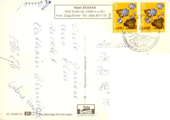 13896618 alte Postkarte Elm GL Hotel Segnes postalisch gelaufen Erhaltung siehe scans [FriedD77] KatCode: 11470090300866