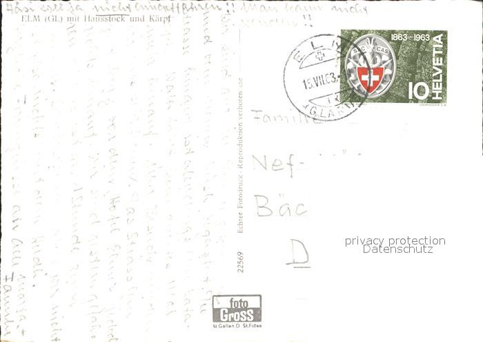 11631816 alte Postkarte Elm GL Panorama mit Hausstock und Kaerpf Glarner Alpen postalisch gelaufen KatCode: 11470090300866
