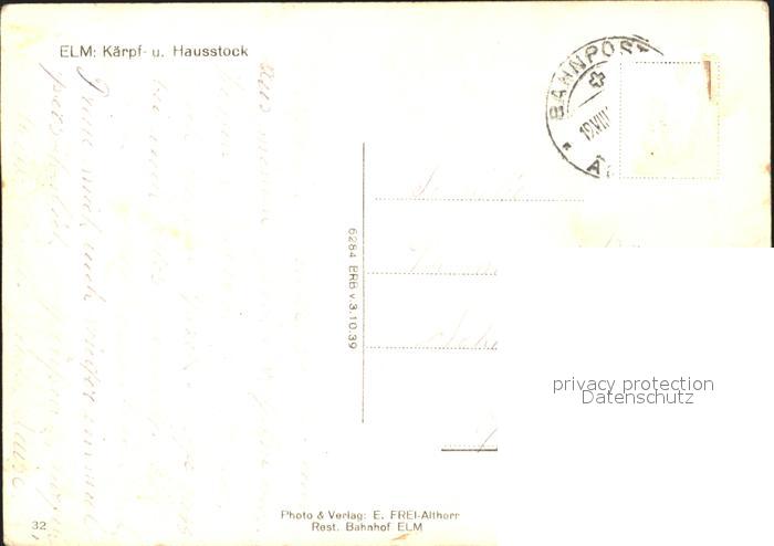 11631798 alte Postkarte Elm GL Panorama mit Kaerpf und Hausstock Glarner Alpen postalisch gelaufen Erhaltung siehe scans KatCode: 11470090300866