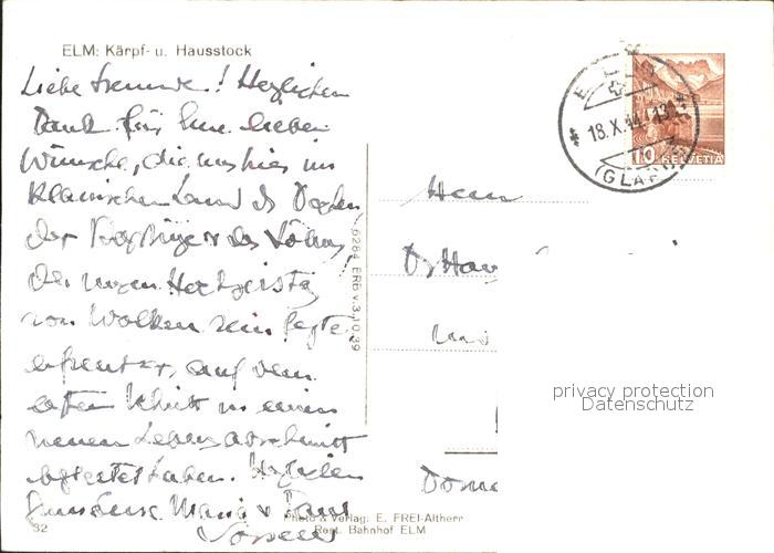 11631925 alte Postkarte Elm GL Panorama mit Kaerpf und Hausstock Glarner Alpen postalisch gelaufen Erhaltung siehe scans KatCode: 11470090300866