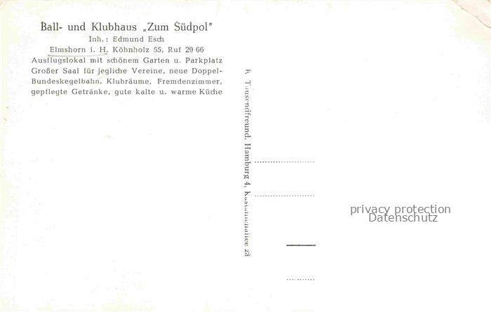 34145760 ELMSHORN Pinneberg Schleswig-Holstein Ball- und Klubhaus Zum Suedpol Gastraum Festsaal Ausflugslokal postalisch nicht gelaufen Erhaltung siehe scans [FriedD77] KatCode: 11110001056015