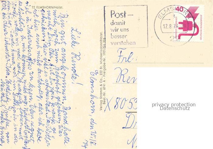 74042934 alte Postkarte ELMSHORN Pinneberg Schleswig-Holstein Fliegeraufnahme postalisch gelaufen Erhaltung siehe scans [WerneD78] KatCode: 11110001056015