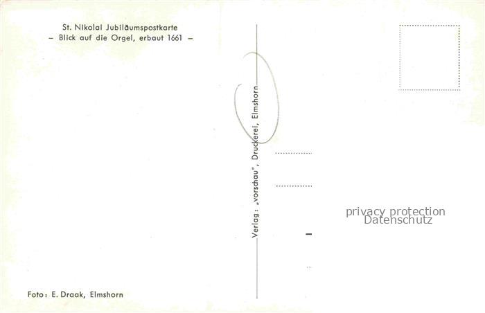 74153366 ELMSHORN Pinneberg Schleswig-Holstein Kirche St. Nikolai Jubilaeumspostkarte Blick auf die Orgel erbaut 1661 postalisch nicht gelaufen Erhaltung siehe scans [FriedD77] KatCode: 11110001056015