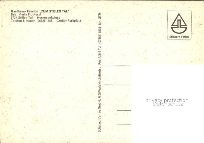 72468033 Elmstein Gasthaus Pension Zum Stillen Tal postalisch nicht gelaufen Erhaltung siehe scans KatCode: 11110007332014