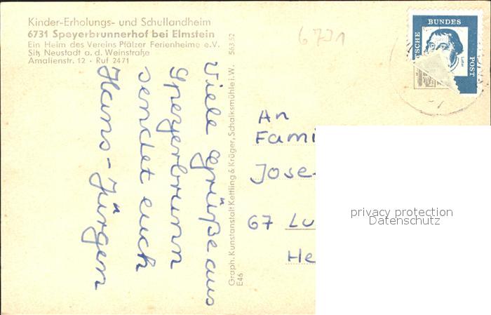 41793025 alte Postkarte Elmstein Kinder-Erholungs- Schullandheim postalisch gelaufen Erhaltung siehe scans KatCode: 11110007332014