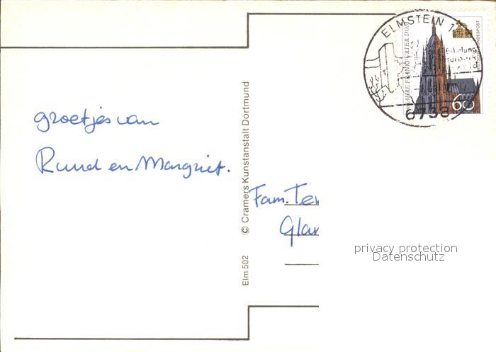 72235773 alte Postkarte Elmstein Ortsblick Rhefels Pavillon Dorfbrunnen Heinrich Weintz Schule Burg Elmstein postalisch gelaufen Erhaltung siehe scans KatCode: 11110007332014