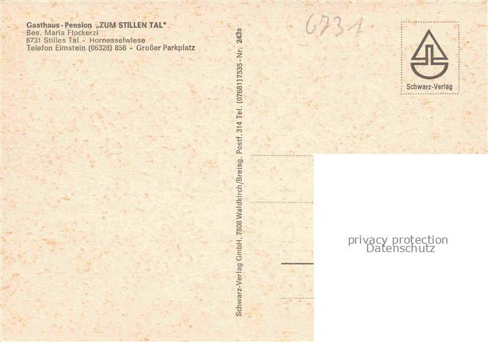 74046716 Elmstein Rheinland-Pfalz Gasthaus Zum stillen Tal postalisch nicht gelaufen Erhaltung siehe scans [WerneD78] KatCode: 11110007332014