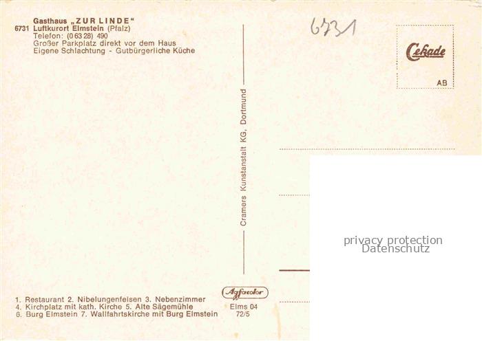 74046790 Elmstein Rheinland-Pfalz Gasthaus Zur Linde Gastraeume Kapelle Muehlrad Panorama Teilansichten postalisch nicht gelaufen Erhaltung siehe scans [WerneD78] KatCode: 11110007332014