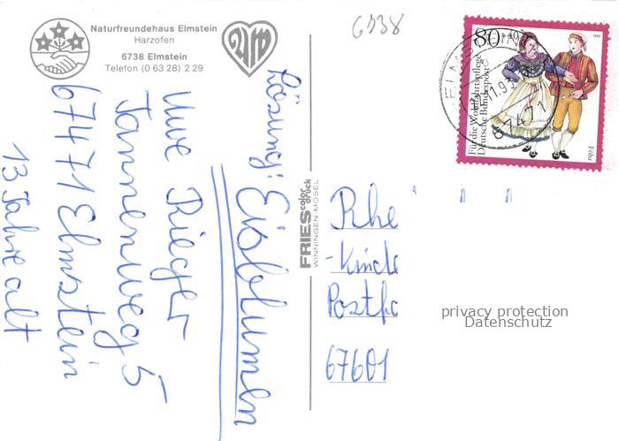 74042337 alte Postkarte Elmstein Rheinland-Pfalz Naturfreundehaus Elmstein Harzofen postalisch gelaufen Erhaltung siehe scans [WerneD78] KatCode: 11110007332014