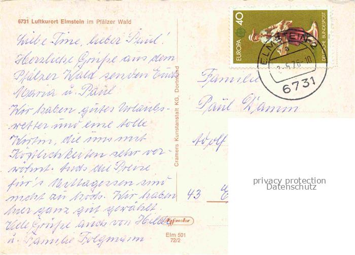 74046789 alte Postkarte Elmstein Rheinland-Pfalz Teilansicht postalisch gelaufen Erhaltung siehe scans [WerneD78] KatCode: 11110007332014