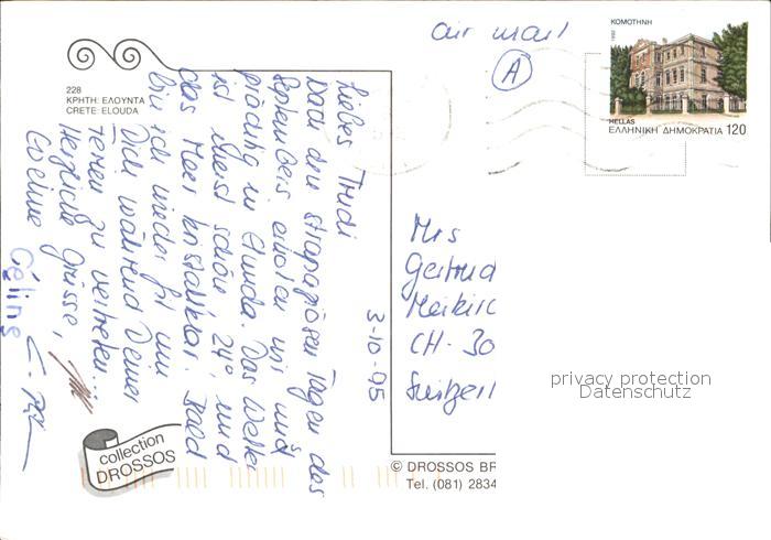 old postcard Elouda Elounda Panorama Insel Turm postalisch gelaufen Erhaltung siehe scans