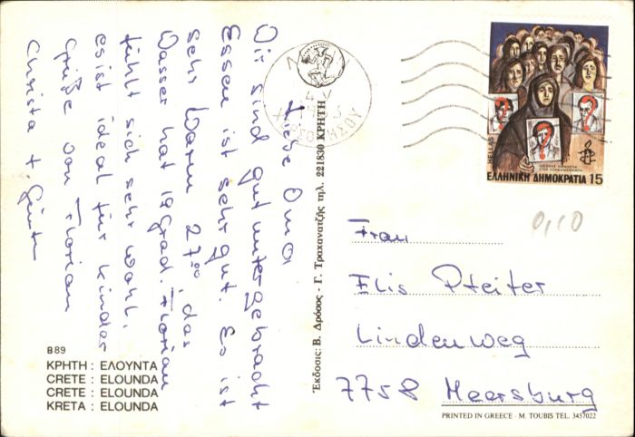 old postcard Elounda Crete Kreta postalisch gelaufen