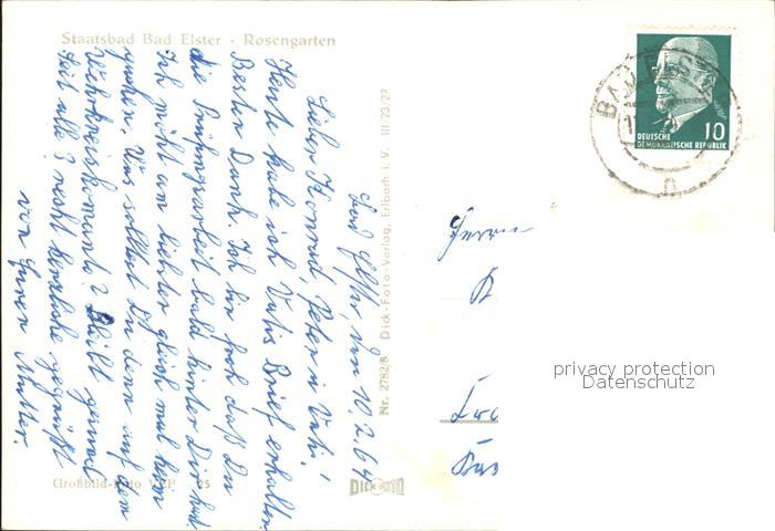 72377112 alte Postkarte Elster Bad Staatsbad Rosengarten postalisch gelaufen Erhaltung siehe scans KatCode: 11110014178050