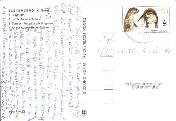 72365443 alte Postkarte Elsterberg Vogtland Burgruine Turm Haupttor Burgruine August-Bebel-Bruecke postalisch gelaufen Erhaltung siehe scans KatCode: 11110014178150