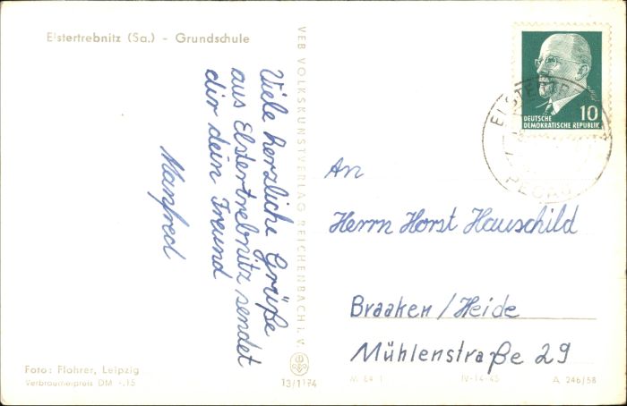 30727447 alte Postkarte Elstertrebnitz Schule postalisch gelaufen KatCode: 11110014379150