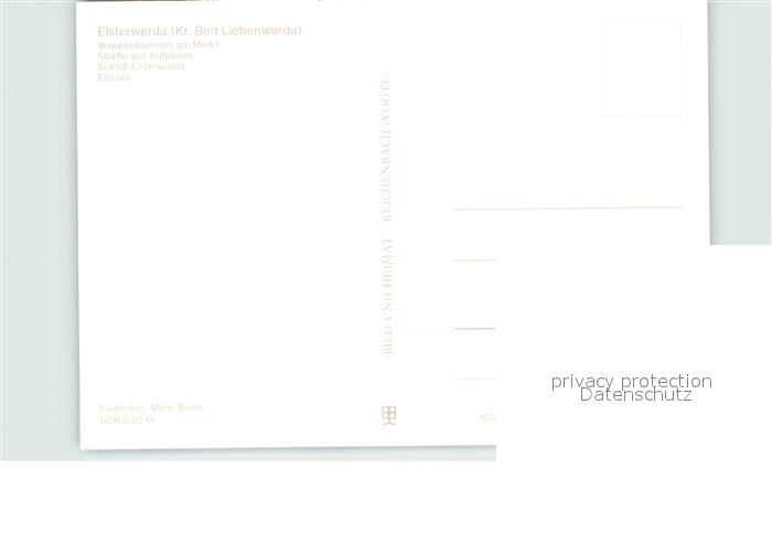 72533991 Elsterwerda Wappenbrunnen Strasse des Aufbaus Schloss Elsterwerda Eiscafe postalisch nicht gelaufen Erhaltung siehe scans [WerneD78 kt116box] KatCode: 11110012062124