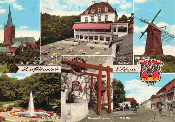 Elten Emmerich am Rhein St Martinus Kur Hotel Alte Muehle Parkanlagen Drusus Brunnen Am Markt postalisch gelaufen Erhaltung siehe scans [WerneD78] alte Postkarte Wern Katcode 11110005154008