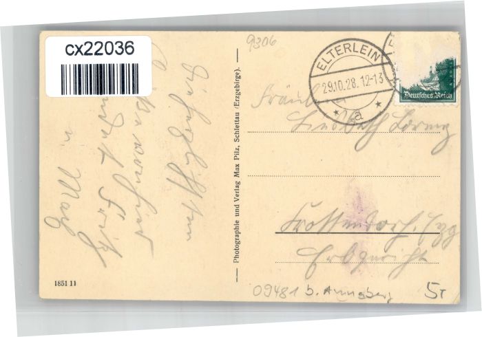 30740028 alte Postkarte Elterlein Gasthaus Finkenburg postalisch gelaufen KatCode: 11110014171090