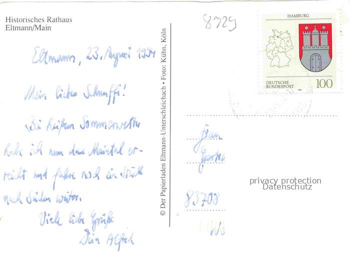 74054455 alte Postkarte Eltmann Historisches Rathaus Brunnen postalisch gelaufen Erhaltung siehe scans [WerneD78] KatCode: 11110009674133