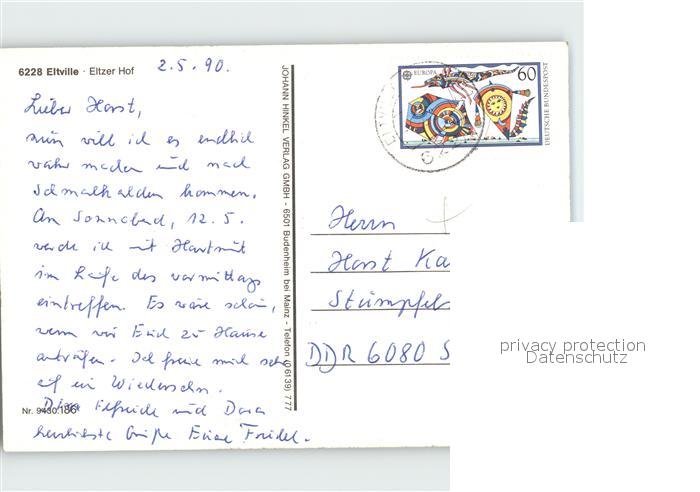 72201090 alte Postkarte Eltville Rhein Eltzer Hof postalisch gelaufen Erhaltung siehe scans KatCode: 11110006439003