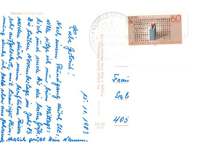 73879250 alte Postkarte Eltville Rhein Fliegeraufnahme postalisch gelaufen Erhaltung siehe scans [WerneD78] KatCode: 11110006439003