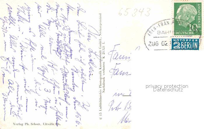 72893129 alte Postkarte Eltville Rhein Fliegeraufnahme postalisch gelaufen Bahnpost Erhaltung siehe scans [KathaD81] KatCode: 11110006439003