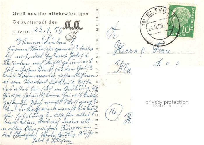 73030343 alte Postkarte Eltville Rhein Fliegeraufnahme mit den Anlagen der Sektkellerei Matheus Mueller postalisch gelaufen Erhaltung siehe scans [WerneD78] KatCode: 11110006439003
