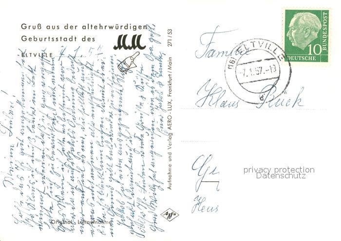 73030342 alte Postkarte Eltville Rhein Fliegeraufnahme mit den Anlagen der Sektkellerei Matheus Mueller postalisch gelaufen Erhaltung siehe scans [WerneD78] KatCode: 11110006439003