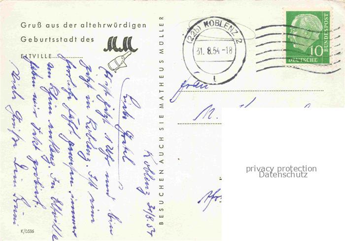 74150675 alte Postkarte Eltville Rhein Fliegeraufnahme mit den Anlagen der Sektkellerei Matheus Mueller postalisch gelaufen Erhaltung siehe scans [WerneD78] KatCode: 11110006439003