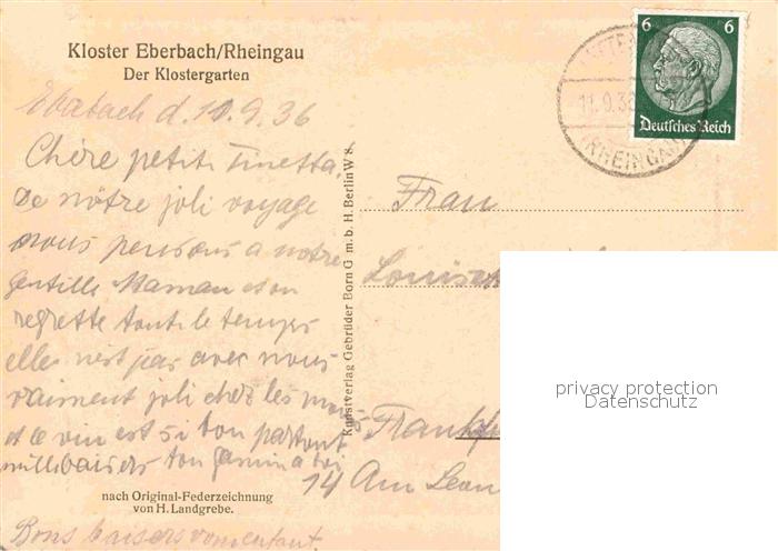 72790834 alte Postkarte Eltville Rhein Kloster Eberbach Klostergarten postalisch gelaufen Erhaltung siehe scans [AndreD76] KatCode: 11110006439003