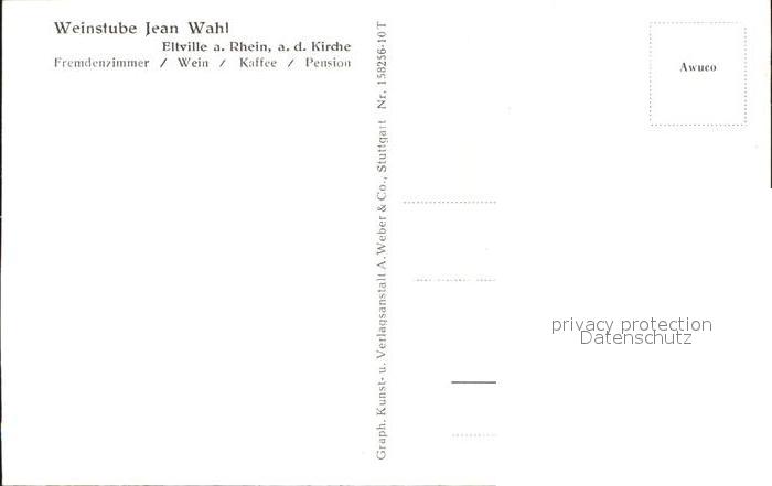 72281925 Eltville Rhein Pension Weinstube Jean Wahl postalisch nicht gelaufen Erhaltung siehe scans KatCode: 11110006439003