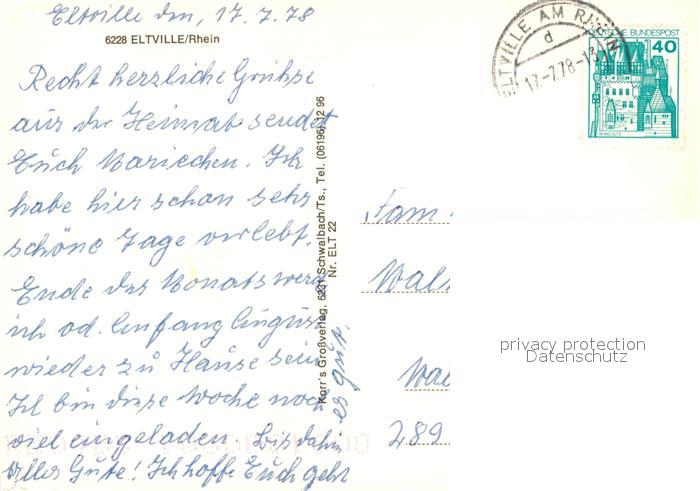 73256532 alte Postkarte Eltville Rhein Rheinpromenade Bootsanleger Rheindampfer postalisch gelaufen Erhaltung siehe scans [FriedD77] KatCode: 11110006439003