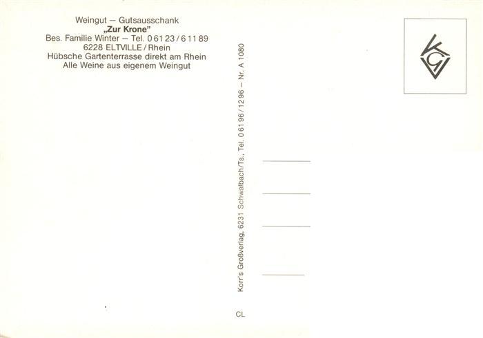 73935939 Eltville Rhein Weingut Gutsausschank Zur Krone Gaststube Terrasse postalisch nicht gelaufen Erhaltung siehe scans [FriedD77] KatCode: 11110006439003