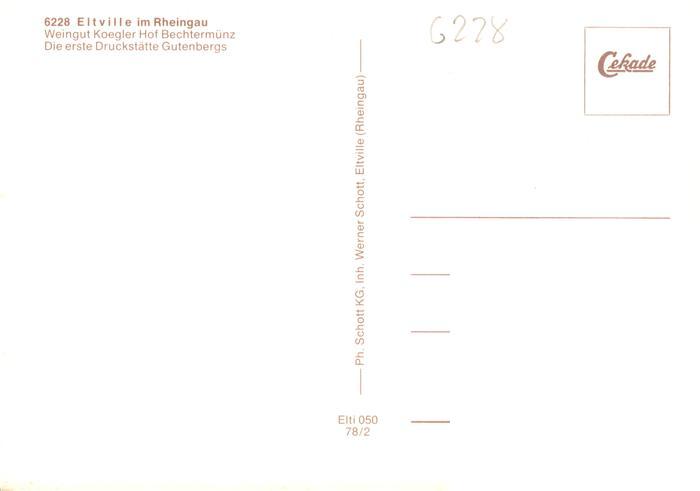 73935914 Eltville Rhein Weingut Koegler Hof Bechtermuenz postalisch nicht gelaufen Erhaltung siehe scans [FriedD77] KatCode: 11110006439003